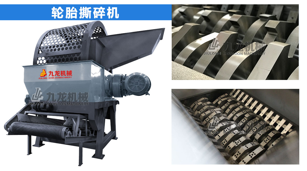 3.轮胎撕碎机:将轮胎撕碎成胶片(50mm-150mm)。